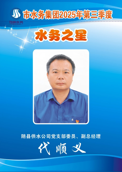 一名黨員就是一座燈塔。代順義,這位老共產(chǎn)黨員,幾十年如一日在基層一線恪盡職守、默默耕耘,用心用情保障農(nóng)村飲水安全,始終踐行著共產(chǎn)黨員的初心使命,讓黨旗在隨縣供水服務(wù)的最前線高高飄揚(yáng),也讓水務(wù)之星的光芒在這片土地上熠熠生輝。