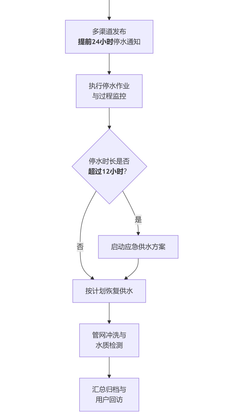 客戶服務(wù)中心:負(fù)責(zé)停水通知的發(fā)布、用戶溝通、咨詢解答及投訴處理。