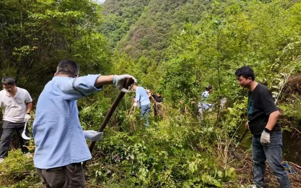 因長期停用,炸藥庫周邊雜草叢生、灌木密布,部分區(qū)域雜草高達兩米,不僅影響安全巡查,還存在多種風險?,F場,職工們手持割草機、鐮刀、鐵鍬等工具,分工協作:年輕職工主動承擔割草、砍伐重任,老員工則負責理碎石、搬運雜物,黨員先鋒們更是一馬當先,帶頭攻堅復雜區(qū)域。盡管汗水浸透工裝,雙手磨出水泡,但無人喊苦叫累,展現出強大的團隊凝聚力。